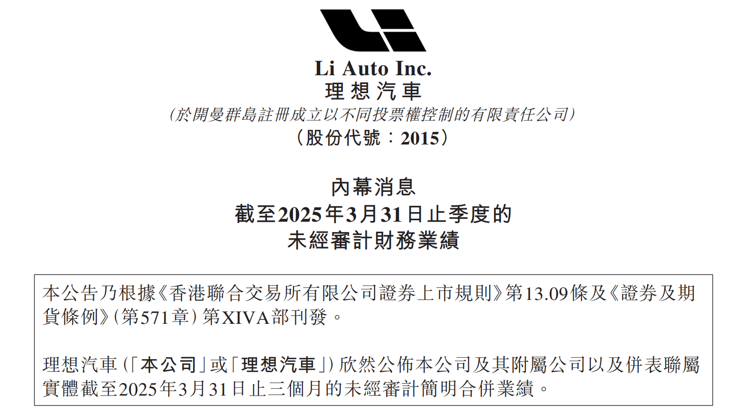 5月29日,理想汽车正式公布其2025年第一季度财报。数据显示,理想汽车在本季度实现了稳健的财务表现,总营收达到259亿元人民币,同比增长1.1%,环比下滑41.4%;净利润为6.47亿元人民币,同比增长9.4%,尽管环比下滑81.7%,但公司已连续10个季度实现盈利。
