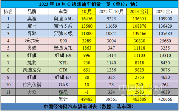 与之形成鲜明对照的是,受新能源板块销量下滑的影响,国产C级车市场在10月出现了罕见的同比下跌。数据显示,10月,国产C级车的累计销量为88230辆,环比下滑9.61%,与去年同期相比下滑1.2%;前10个月的整体销量为801710辆,同比增长6.44%。