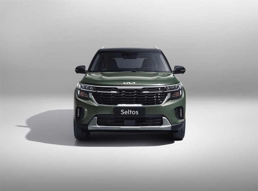 外观方面,赛图斯的造型设计延续了海外版Seltos的设计语言。前脸采用了尺寸更大的前进气格栅,并且从两侧大灯角还分别延伸出了两条日行灯带,点亮后的视觉效果极佳。在格栅内部也设计了立体感十足的纹理布局,使得整个车头看起来十分犀利。