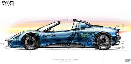 根据设计草图来看,新车在整体设计方面与T.33保持了高度一致,虽然采用了可拆卸式顶棚,但是标志性的车顶进气口以及蝴蝶式车门预计都将得到保留。GMA T.33敞篷版的重量为1108kg,比T.33的1090kg还要略重一些,或许是因为增加了敞篷结构。