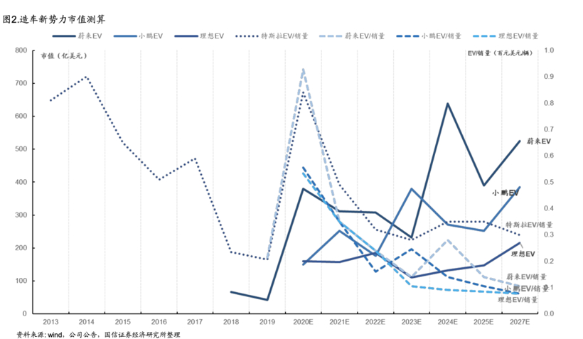 造车新势力市值测算 来源:国信证劵